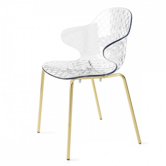 Stolička Calligaris, zlatá/transparentná, dostupný 1ks, cena v 50% zľave 177,- eur.